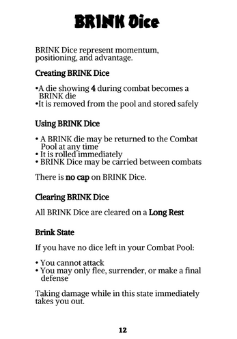 BRINK uses small d6 dice pools, four broad Attributes, and a single core system to handle everything from combat to recovery. As danger escalates, your dice disappear, options narrow, and every decision pushes you closer to the edge.