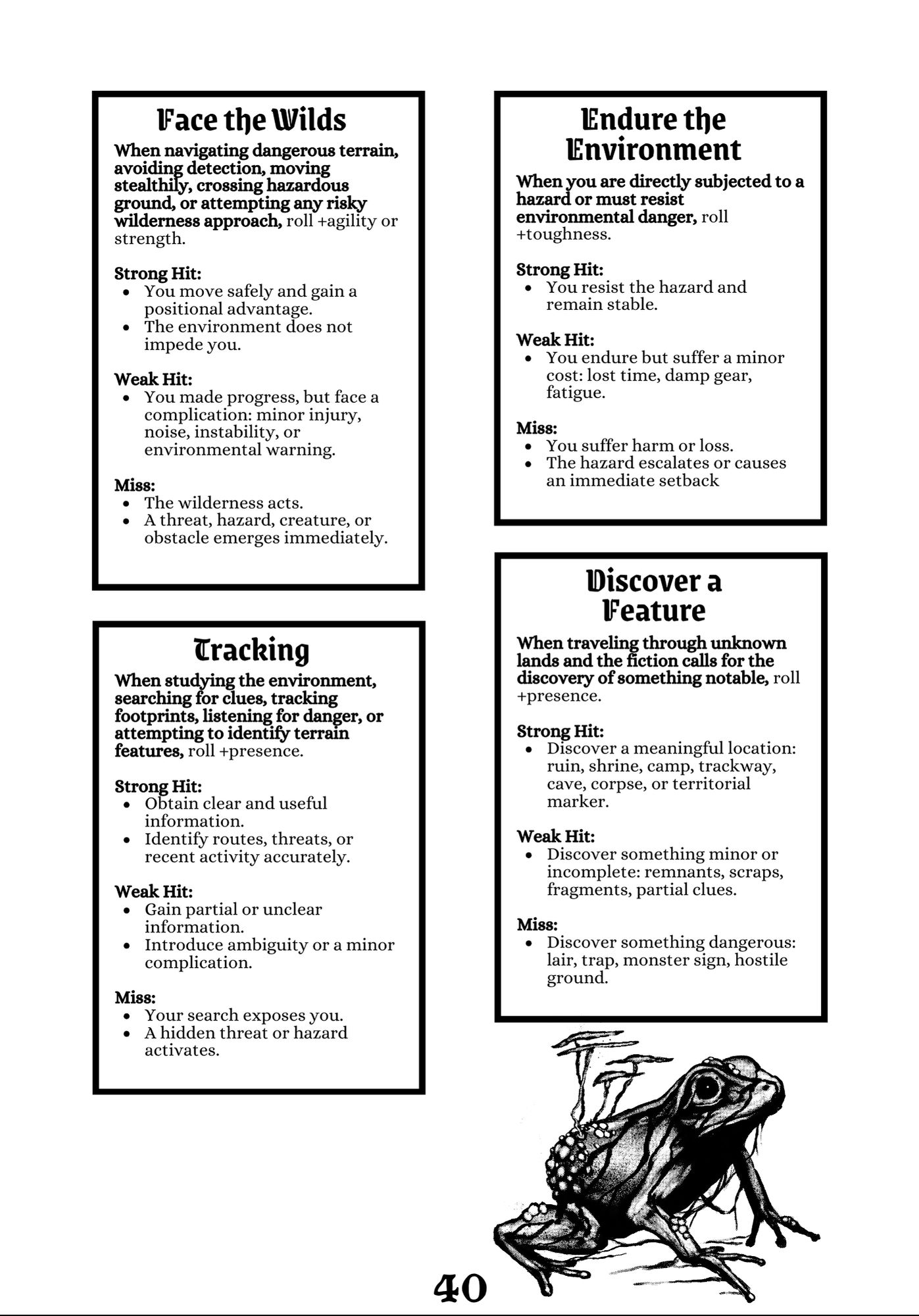 A full standalone engine containing 138 pages with DOZENS of tables, 40+ Moves, 6 classes, The Unspokens (Reclvse's Calendar), powers and more!